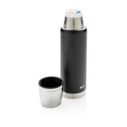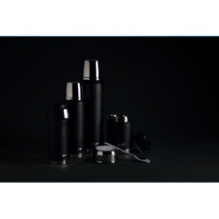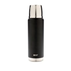 Termos 500 ml z izolacją próżniową, podwójne ścianki, wnętrze ze stali nierdzewnej 18/8, powlekany proszkowo czarny kolor cechujący się niezwykłą trwałością i odpornością na wyblaknięcie czy popękanie, ściana wewnętrzna pokryta miedzią o wysokim poziomie przewodnictwa, wyłącznie mycie ręczne, utrzymuje temperaturę napojów gorących do 20 godzin oraz zimnych do 24 godzin +leakproof