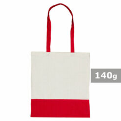Torba na zakupy, posiada długie uchwyty umożliwiające noszenie na ramieniu, produkt wykonany z bawełny o gramaturze 140 g/m2