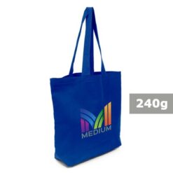 Torba na zakupy z szerokim dnem, posiada długie uchwyty wykonane z brezentu (długość 70 cm, szerokość 40 mm) umożliwiające noszenie na ramieniu, produkt wykonany z bawełny o gramaturze 240 g/m²