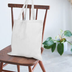 Torba na zakupy, posiada długie uchwyty umożliwiające noszenie na ramieniu, produkt wykonany z bawełny o gramaturze 180 g/m2