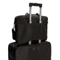 Torba na laptopa 15,4″, wykonana z poliestru 600D i 1680D, wewnątrz kieszeń na tablet, z przodu kieszeń na zamek błyskawiczny z miejscem na przybory do pisania i inne akcesoria, regulowany i odpinany pasek na ramię umożliwia noszenie torby na różne sposoby, posiada mocowanie do walizki, nie zawiera PVC, ślad węglowy produktu: 4,07 kg CO2