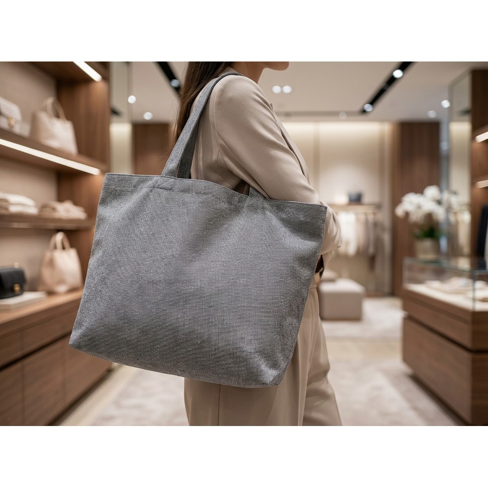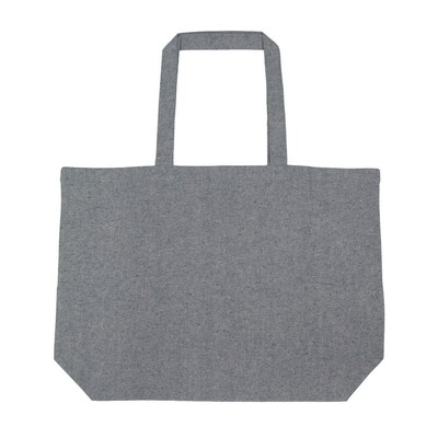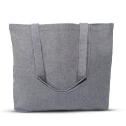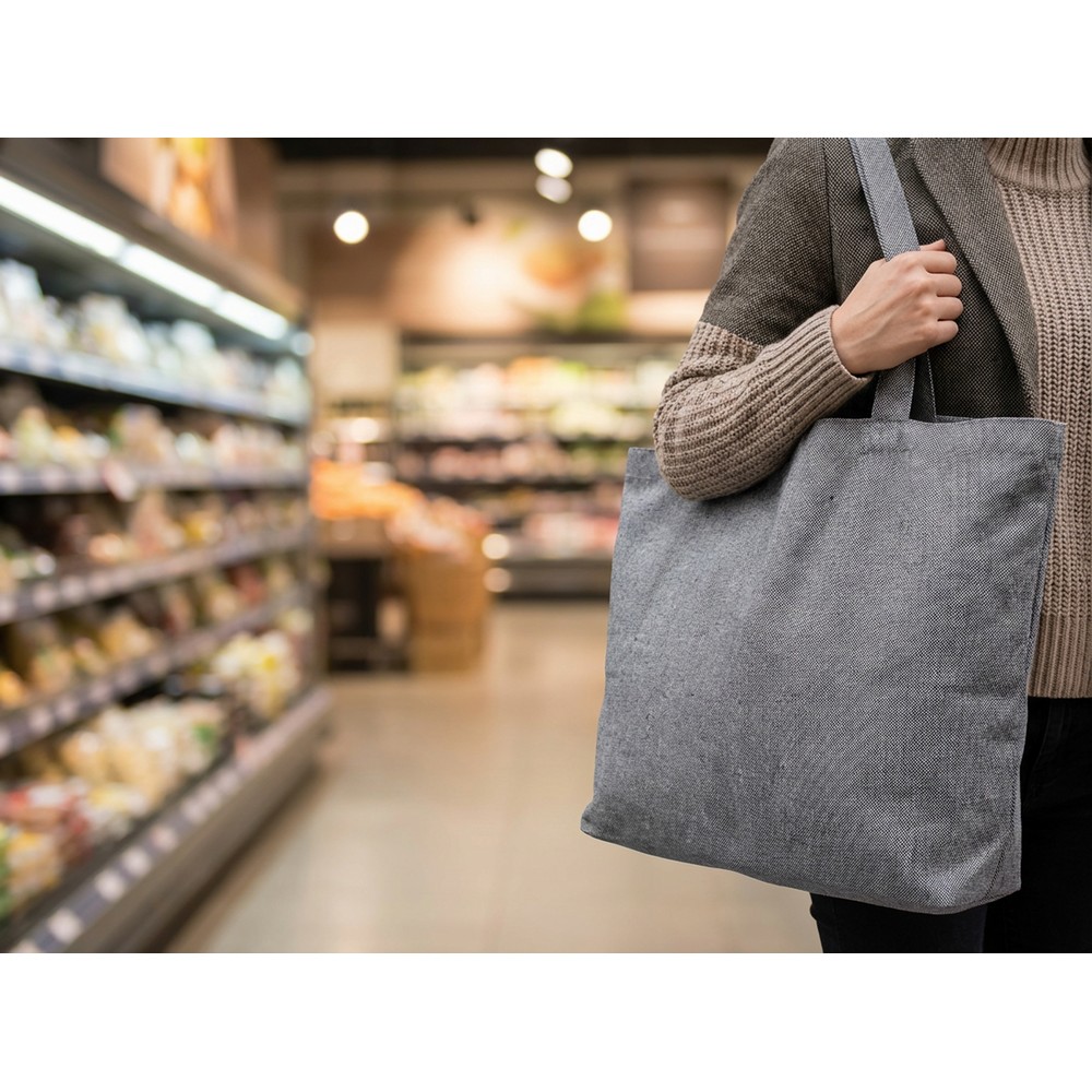 Torba na zakupy Fairtrade B’RIGHT w kolorach melange, z szerokim i wytrzymałym dnem, posiada długie uchwyty (długość 70 cm, szerokość 3 cm) umożliwiające noszenie na ramieniu, możliwość nadrukowania dużego i widocznego z daleka logotypu, wykonana w 50% z nieprzetworzonej bawełny i w 50% z poliestru z recyklingu o gramaturze 300 g/m²