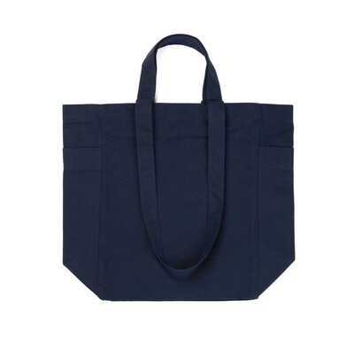 Torba na zakupy, wykonana w 70% z płótna z bawełny z recyklingu i w 30% z poliestru z recyklingu, płótno z recyklingu nie zawiera związków chemicznych pozostałych po barwieniu lub wybielaniu, przegroda główna zamykana na zamek błyskawiczny, posiada krótkie uchwyty oraz długie uchwyty umożliwiające noszenie na ramieniu