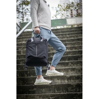 Torba podróżna BrandCharger Hauler o pojemności 23 litrów, warstwa wodoodporna, kieszeń na laptopa, kieszeń na buty, dwie kieszenie boczne, pasek do przymocowania do walizki, odblaskowe elementy, produkt wykonany z nylonu z recyklingu