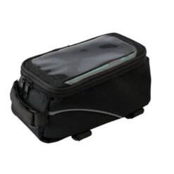 Torba rowerowa, przegroda główna zamykana na zamek błyskawiczny, kieszeń na telefon z transparentnym okienkiem umożliwiającym obsługę ekranów dotykowych, wyjście na słuchawki, mocowana na rzep
