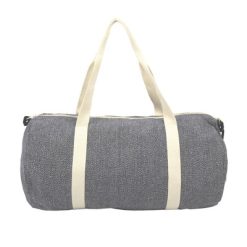Torba sportowa, podróżna B’RIGHT, wykonana z bawełny z recyklingu i poliestru z recyklingu, zgodna z certyfikatem GRS (Global RecycIed Standard), duża przegroda główna na zamek błyskawiczny, uchwyty i regulowany pasek na ramię