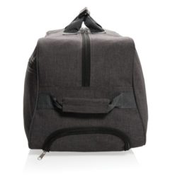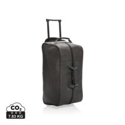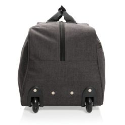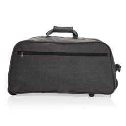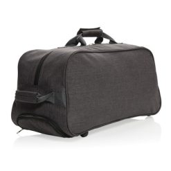 Torba sportowa, podróżna na kółkach, wykonana z dwukolorowego poliestru 600D o dużej gęstości, posiada przednią kieszeń, przegroda główna na zamek błyskawiczny, ślad węglowy produktu: 7,83 kg CO2