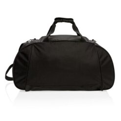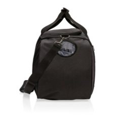 Torba sportowa, podróżna, wykonana z poliestrów 600D i 1680D, pojemna główna przegroda z zamknięciem w kształcie litery U na górze, boczna kieszeń na buty z otworami wentylacyjnymi, przednia kieszeń na zamek błyskawiczny na drobne akcesoria, podwójne uchwyty, regulowany pasek na ramię, nie zawiera PVC, ślad węglowy produktu: 8,44 kg CO2