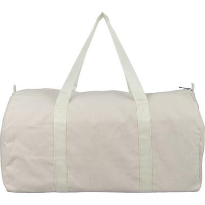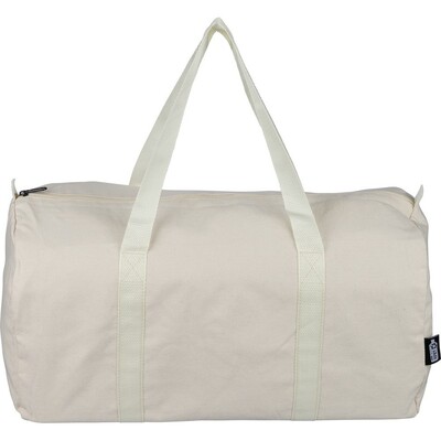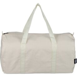 Torba sportowa, podróżna, 330 g/m² o pojemności ok. 30 litrów, podszewka z poliestru 210 D, duża kieszeń zapinana na zamek z wierzchu, posiada długie uchwyty umożliwiające noszenie na ramieniu (100 x 3 cm), ikona RPET na metce, produkt wykonany z polibawełny z recyklingu, poliestru i RPET
