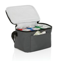 Torba termoizolacyjna z uchwytem, przestronna przegroda główna, kieszeń z przodu, mieści do 6 puszek 330 ml, wykonana z 300D RPET, do którego produkcji zostało ponownie wykorzystanych 3,9 butelek PET, dzięki zastosowaniu technologii śledzącej AWARE™ wykorzystane włókna są identyfikowalne z pochodzenia oraz wyprodukowane zostały zgodnie z ideą zrównoważonego rozwoju, 2% wpływów z każdego sprzedanego produktu z kolekcji Impact jest przekazywane na rzecz Water.org