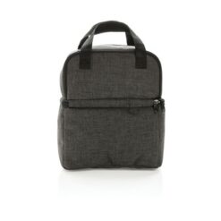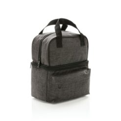 Torba termoizolacyjna z uchwytami i 2 przegrodami, wykonana z poliestru 600D, górna przegroda do owoców i przekąsek oraz dolna przegroda zmieści do 6 puszek 0,33l, przednia kieszeń na zamek błyskawiczny, ślad węglowy produktu: 2,11 kg CO2
