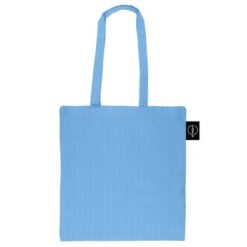 Torba na zakupy B’RIGHT, posiada długie uchwyty umożliwiające noszenie na ramieniu, produkt wykonany z bawełny z recyklingu o gramaturze 200 g/m² i poliestru z recyklingu, zgodna z certyfikatem GRS (Global RecycIed Standard)