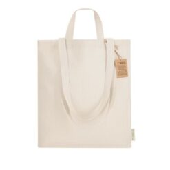 Torba na zakupy z 2 długimi uchwytami i 2 krótkimi uchwytami, produkt wykonany z bawełny z recyklingu o gramaturze 140 g/m²