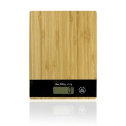 Waga kuchenna z bambusowym frontem, wyświetlacz LCD, funkcja tarowania, maksymalne obciążenie: 5 kg