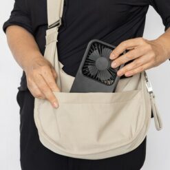 Wentylator kieszonkowy, wentylator biurkowy, wykonany z ABS z recyklingu, do 3 godzin działania na jednym ładowaniu, kabel w komplecie, całkowita zawartość materiałów z recyklingu obliczona na podstawie masy całkowitej produktu: 58%