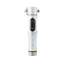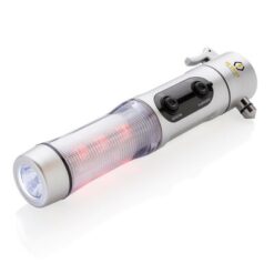 Latarka bezpieczeństwa, obudowa wykonana z ABS, 1 biała dioda LED oraz 9 czerwonych migających na boku, przecinak do pasów, młotek bezpieczeństwa, magnetyczna podstawka do przymocowania do karoserii samochodu, ślad węglowy produktu: 1,29 kg CO2