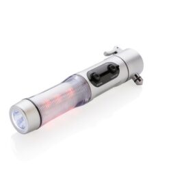 Wielofunkcyjna latarka bezpieczeństwa z nadrukiem Twojego logo, materiał: plastik, kolor: srebrny