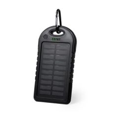 Wodoodporny power bank 4000 mAh, ładowarka słoneczna z nadrukiem Twojego logo, materiał: plastik, silikon, kolor: czarny