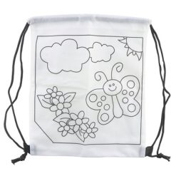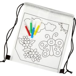 Worek ze sznurkiem do kolorowania, flamastry z nadrukiem Twojego logo, materiał: non-woven, kolor: biały