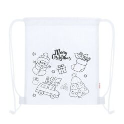 Worek ze sznurkiem do kolorowania, świąteczny wzór, kredki z nadrukiem Twojego logo, materiał: rpet, non-woven, kolor: biały