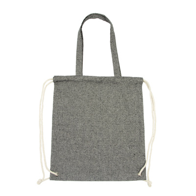 Worek ze sznurkiem i torba na zakupy 2 w 1, sznurki umożliwiają noszenie na plecach a długie uchwyty pozwalają nosić worek na ramieniu, pomieści drobne zakupy lub strój sportowy na siłownię, produkt wykonany z bawełny z recyklingu o gramaturze 140 g/m2