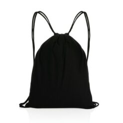 Worek ze sznurkiem AWARE™ z nadrukiem Twojego logo, materiał: bawełna, kolor: czarny