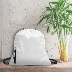 Obszerny worek z grubym sznurkiem umożliwiającym noszenie na plecach, wzmocniony wodoszczelny materiał lepiej chroni przed czynnikami atmosferycznymi, pomieści zakupy lub strój sportowy na siłownię, nowoczesny design, posiada funkcjonalną przednią kieszeń na drobiazgi zamykaną na zamek błyskawiczny, produkt wykonany z poliestru 230 g/m2