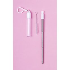Wysuwana słomka wielokrotnego użytku ze stali nierdzewnej i silikonowym ustnikiem, czyścik i etui z karabińczykiem w komplecie