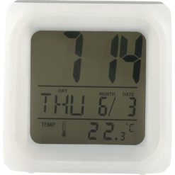Zegar na biurko, budzik z nadrukiem Twojego logo, materiał: hips, kolor: biały