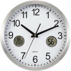 Zegar ścienny, stacja pogodowa z termometrem i wskaźnikiem wilgotności powietrza