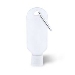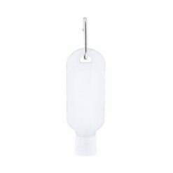 Żel do rąk w półprzezroczystej buteleczce (do wielokrotnego napełniania) z dozownikiem z zamknięciem i karabińczykiem, roztwór o 65% zawartości alkoholu, 30 ml