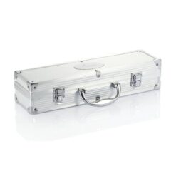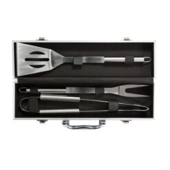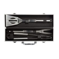 Zestaw akcesoriów do grilla ze stali nierdzewnej, 3 el., w komplecie: szpatułka, widelec z pokrywami ochronnymi i parą szczypiec, rączki ze stali nierdzewnej, w aluminiowym pudełku z uchwytem, ślad węglowy produktu: 7,55 kg CO2