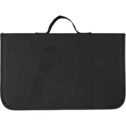 Zestaw do grilla zapakowany w zapinaną na zamek torbę z uchwytem do przenoszenia w dłoni, otwarta przednia kieszeń, zestaw składa się ze szczypiec, noża, widelca i drewnianej deski do krojenia, produkt wykonany ze stali nierdzewnej, drewna i poliestru