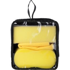 Zestaw do mycia samochodu z nadrukiem Twojego logo, materiał: pu, poliester, mikrofibra, kolor: żółty