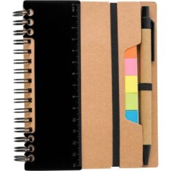 Zestaw do notatek, notatnik (60 stron z papieru z recyklingu w linie), długopis, linijka i 125 karteczek samoprzylepnych (25 szt. z każdego koloru), spiralne bindowanie