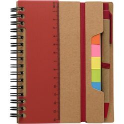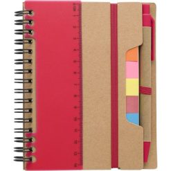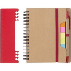 Zestaw do notatek, notatnik, długopis, linijka, karteczki samoprzylepne z nadrukiem Twojego logo, materiał: papier, kolor: czerwony