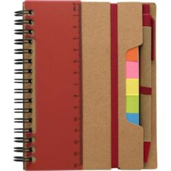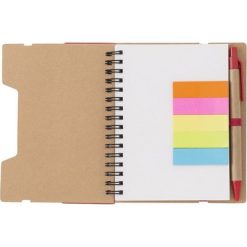 Zestaw do notatek, notatnik (60 stron z papieru z recyklingu w linie), długopis, linijka i 125 karteczek samoprzylepnych (25 szt. z każdego koloru), spiralne bindowanie