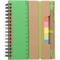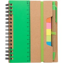 Zestaw do notatek, notatnik (60 stron z papieru z recyklingu w linie), długopis, linijka i 125 karteczek samoprzylepnych (25 szt. z każdego koloru), spiralne bindowanie