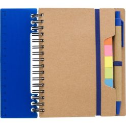 Zestaw do notatek, notatnik (60 stron z papieru z recyklingu w linie), długopis, linijka i 125 karteczek samoprzylepnych (25 szt. z każdego koloru), spiralne bindowanie