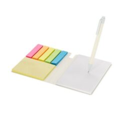 Zestaw do notatek, 50 karteczek samoprzylepnych (6,4 x 8,2 cm), 250 mini karteczek samoprzylepnych (1,5 x 6,4 cm), notatnik, posiada 50 pustych kartek, długopis, wkład w niebieskim kolorze, produkt wykonany ze zrecyklingowanych kartoników po mleku