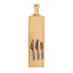 Zestaw do sera, 3 noże do sera wykonane ze stali nierdzewnej, deska wykonana z drewna bukowego, posiada 10-letnią gwarancję, noże nadają się do mycia w zmywarce