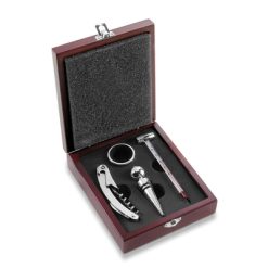 Zestaw do wina, 4 el. z nadrukiem Twojego logo, materiał: metal, drewno, kolor: srebrny