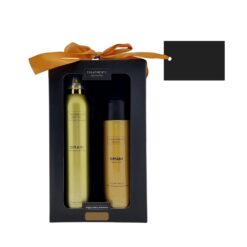 Zestaw kosmetyków Tenderness TREATMENTS, przeznaczony dla kobiet i mężczyzn, w zestawie znajduje się: pieniący się żel pod prysznic 200 ml, balsam do ciała 250 ml, elegancki, papierowy kartonik, w którym zapakowane są kosmetyki, sprawdzą się w codziennej pielęgnacji, dostępne są różne warianty zapachowe: 03 – Ceylon (połączenie zapachów starożytnego Cejlonu z kwiatem owoców i jaśminem), 06 – Mahayana (aromat hiacyntów oraz korzenne nuty piżma i drzewa sandałowego), 08 – Omani (oddaje klimat Omanu – jego plaż, bezkresnych pustyń oraz drzewa sandałowego), 11 – Uyuni (lawenda, irys i drzewne nuty, które przenoszą w atmosferę Salar de Uyuni), 16 – Zhejiang (połączenie zapachu kaszmeranu z wanilią bourbon i jaśminem), 19 – Shinshiro (fasola tonki uzupełniona słodkimi aromatami i wonią kwiatów ryżu), 21 – Verona (romantyczny kwiatowy zapach łączący jaśmin i piwonię), 98 – Samoa (rajski zapach Samoa wzbogacony słodkim piżmem). Znakowanie produktu jest możliwe tylko na srebrnej lub złotej folii z czarnym nadrukiem albo na czarnej apli ze srebrnym lub złotym nadrukiem.