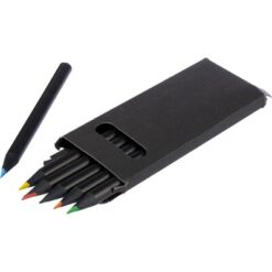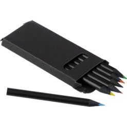 Zestaw 6 kredek z ozdobnym czarnym trzonem, zapakowane w czarny kartonik z recyklingu