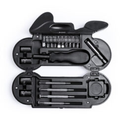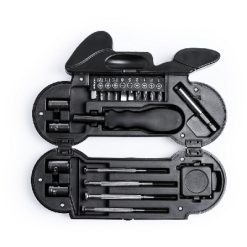 Zestaw narzędzi „motocykl” 21 el., latarka 4 LED z nadrukiem Twojego logo, materiał: plastik, kolor: czarny