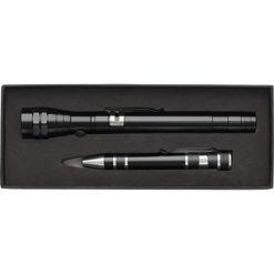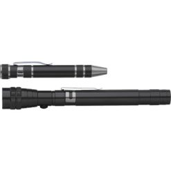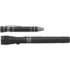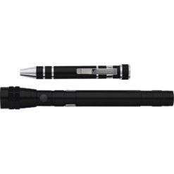 Zestaw narzędzi w pudełku, teleskopowa latarka 3 LED oraz śrubokręt w kształcie długopisu z 4 płaskimi i 4 krzyżakowymi końcówkami