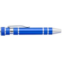 Zestaw narzędzi, śrubokręt, 8 końcówek, teleskopowa latarka 3 LED z nadrukiem Twojego logo, materiał: aluminium, karton, stal węglowa, stal, kolor: niebieski