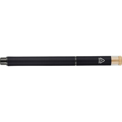 Zestaw piśmienniczy, długopis i pióro kulkowe z nadrukiem Twojego logo, materiał: metal, aluminium, bambus, rpet, kolor: czarny