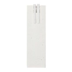 Zestaw piśmienniczy w etui z papieru z nasionami, długopis i „wieczny” ołówek ze specjalną wolnościerającą się końcówką, wkład długopisu w niebieskim kolorze, produkt wykonany ze zrecyklingowanych kartoników po mleku