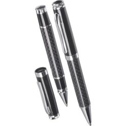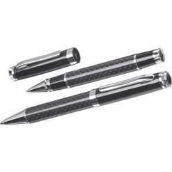 Zestaw piśmienniczy, długopis i pióro kulkowe z nadrukiem Twojego logo, materiał: metal, kolor: czarny